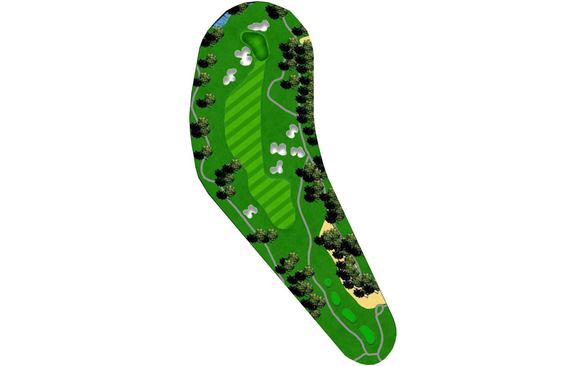 Conservative tee shots will favor the right half of the fairway, but aggresive players can shorten the hole by hitting over the corner of the dogleg left. Long hitters can get close to the green but an errant shot will result in a bogey or worse.