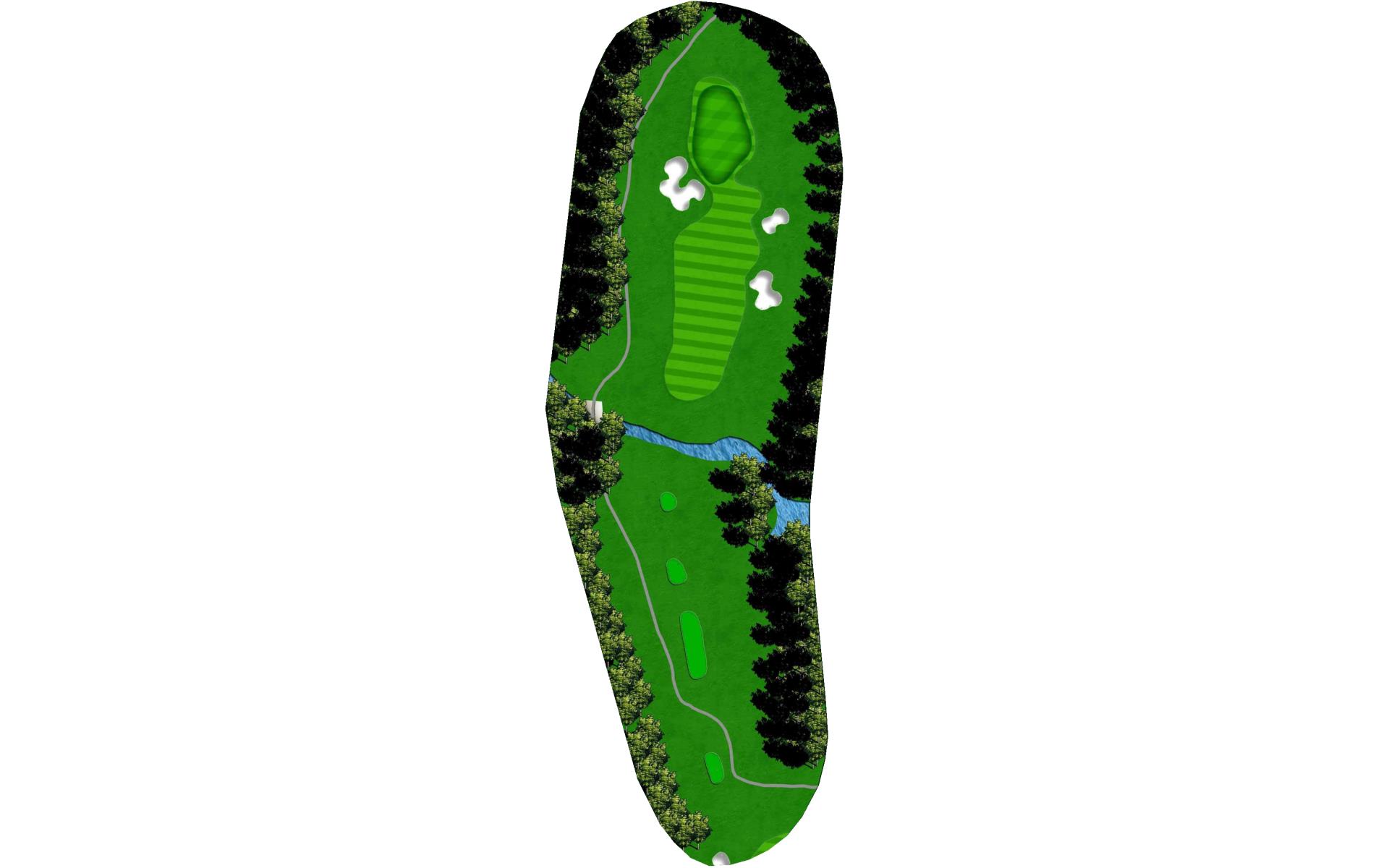 A medium length par 3 with another large green with a variety of difficult pin locations. Favor the left side and avoid the deep bunker on the right.