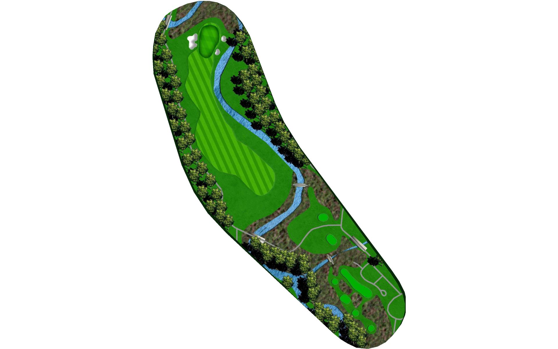 This long par 5 is flanked b the meandering stream. The water is right of the tee shot landing area, then crosses the fairway and must be c…